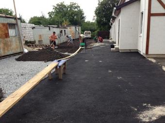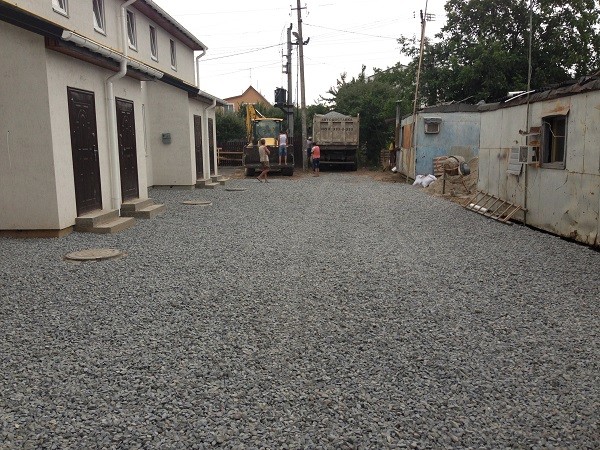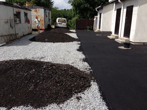 • Выполненные работы: Подготовительные работы, уплотнение грунта, засыпка щебня 15 см, щебень фракция 20 40, Асфальтирование В10 5-6 см