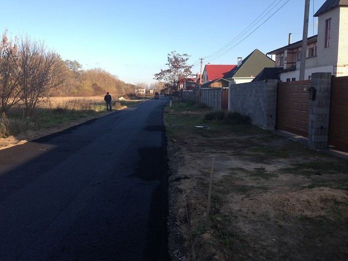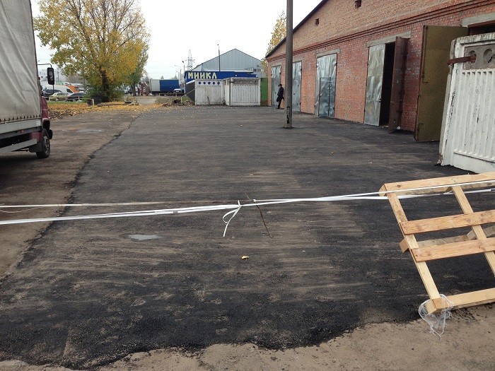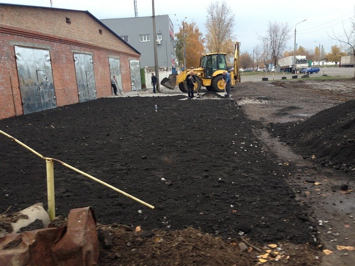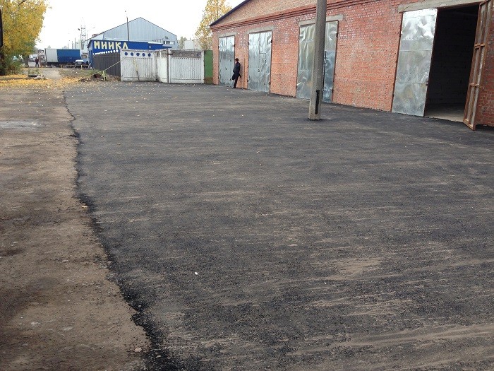 • Выполненные работы: подготовительные работы, засыпка щебня фракция 20-40 - 15 см, асфальтная крошка - 5 см, горячий асфальт В10 - 6 см;
