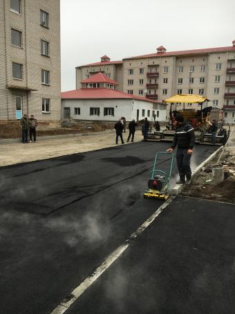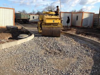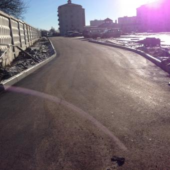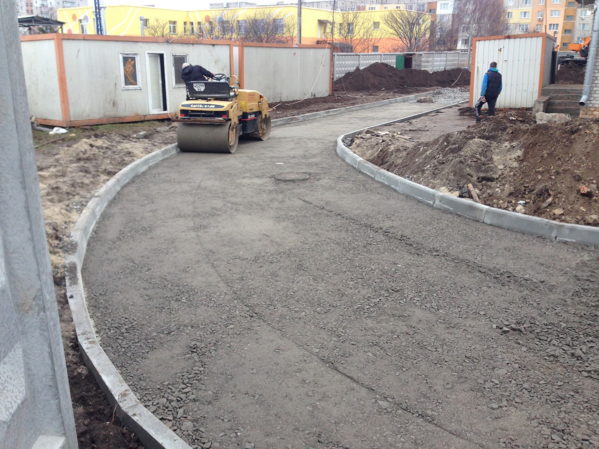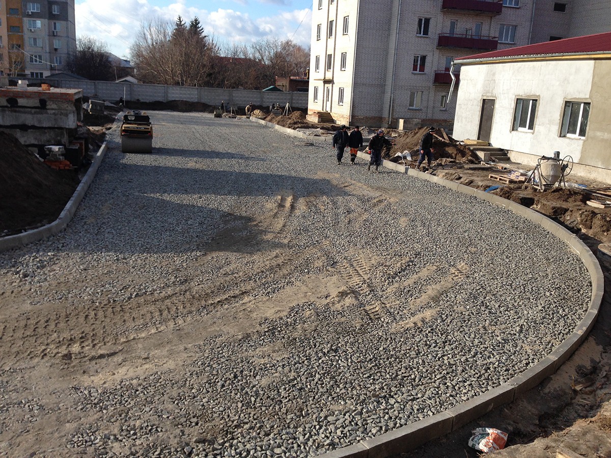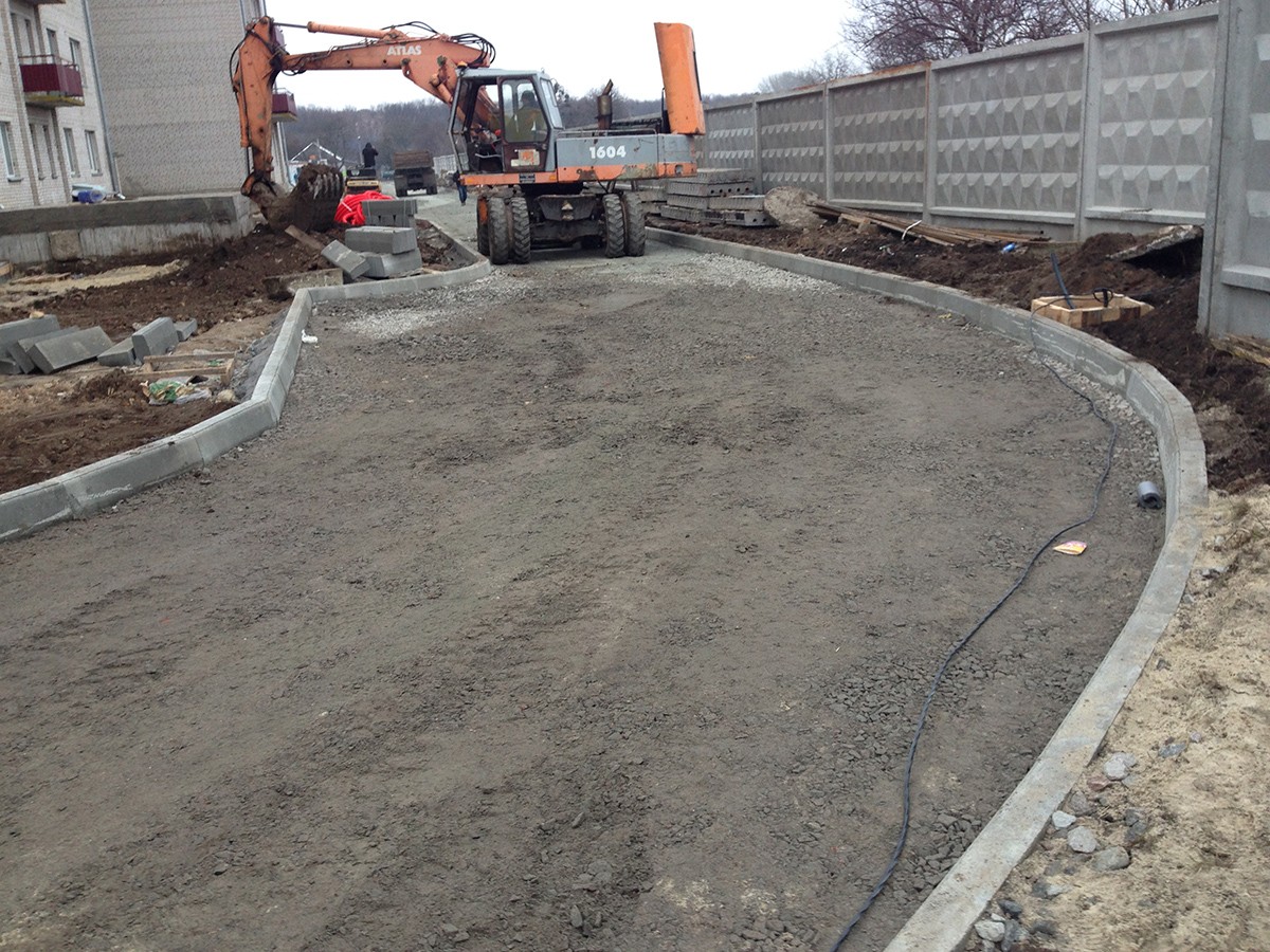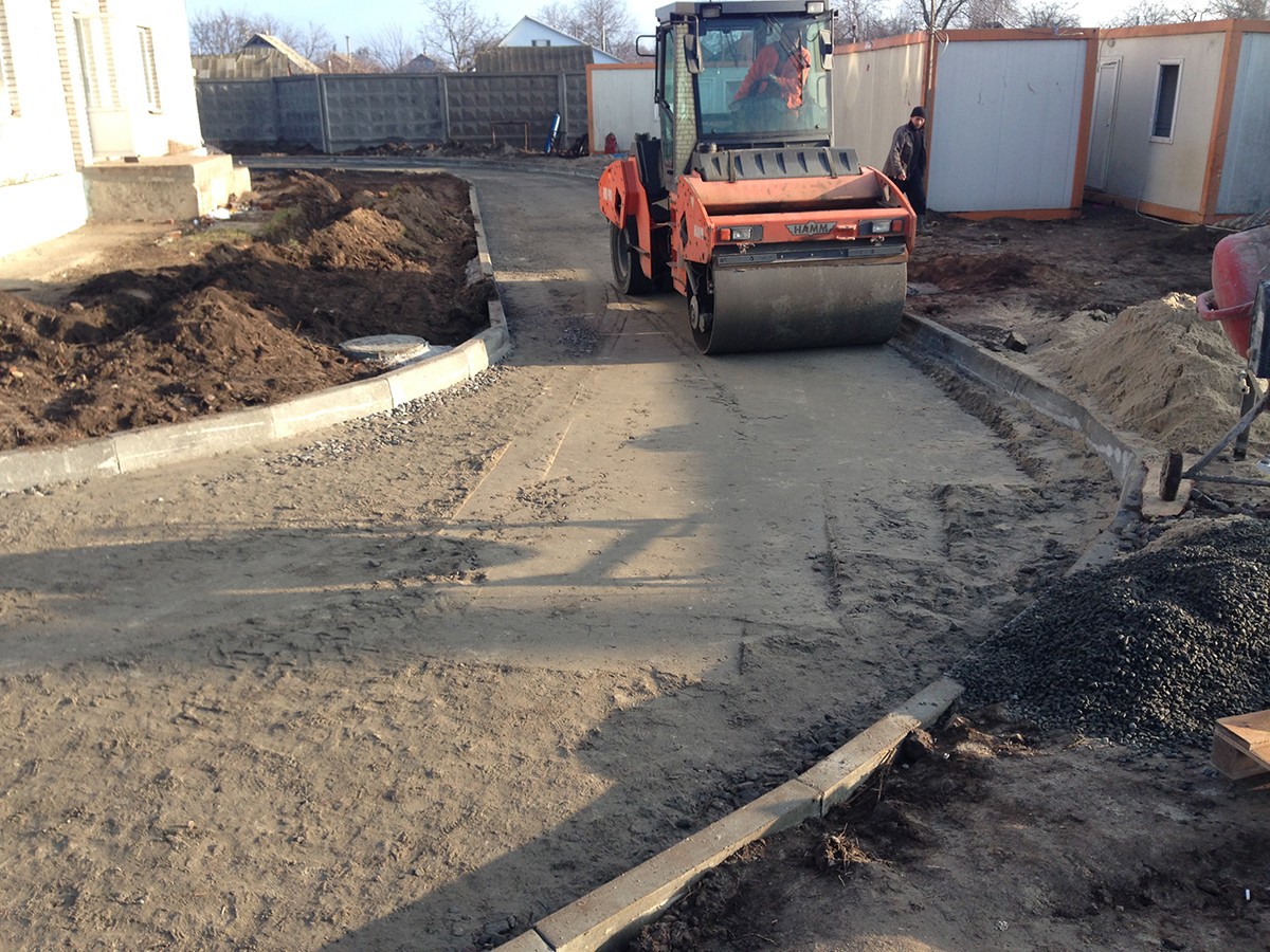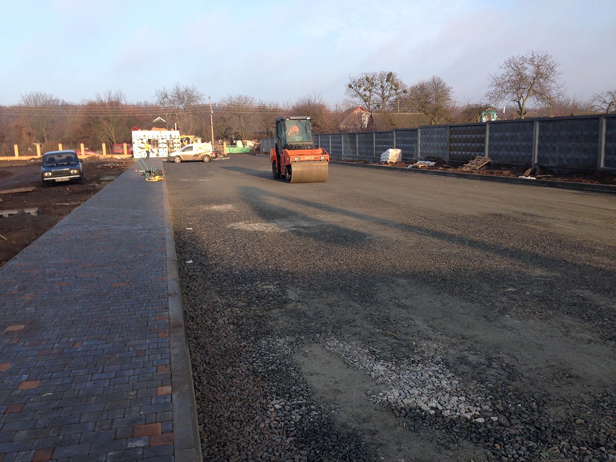 • Выполненные работы: сделали корыто - 60 см, засыпка песка - 15 см, укладка дорожным катком щебня 40-70 фракция - 25 см, засыпка щебня верхний слой 0,40 фракция - 20 см, установка дорожнего бардюра 1380 шт., асфальтирование - 7-8 см В10;