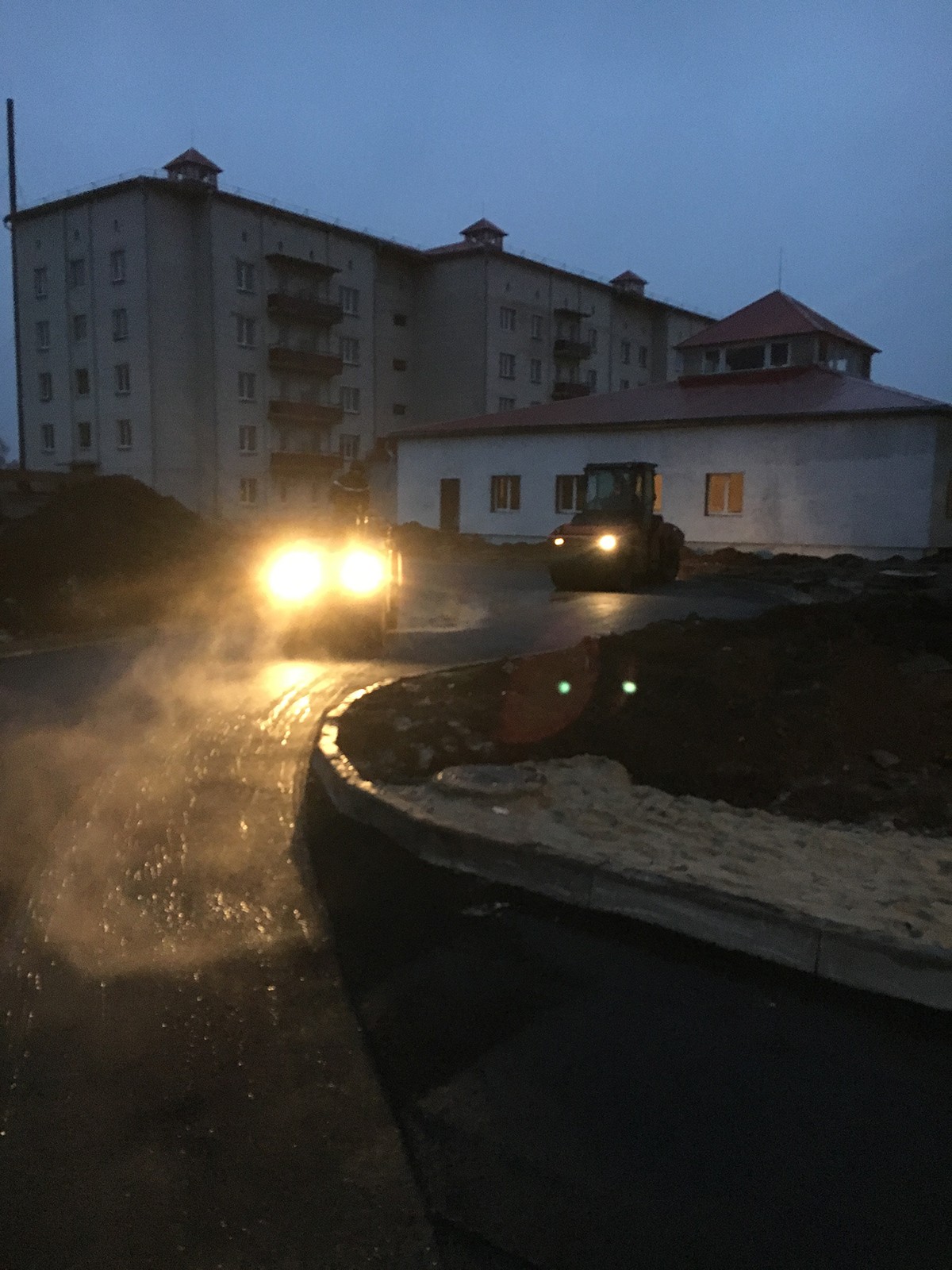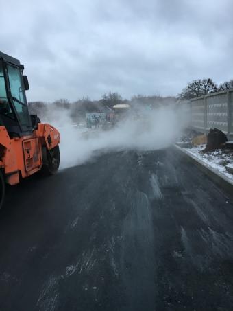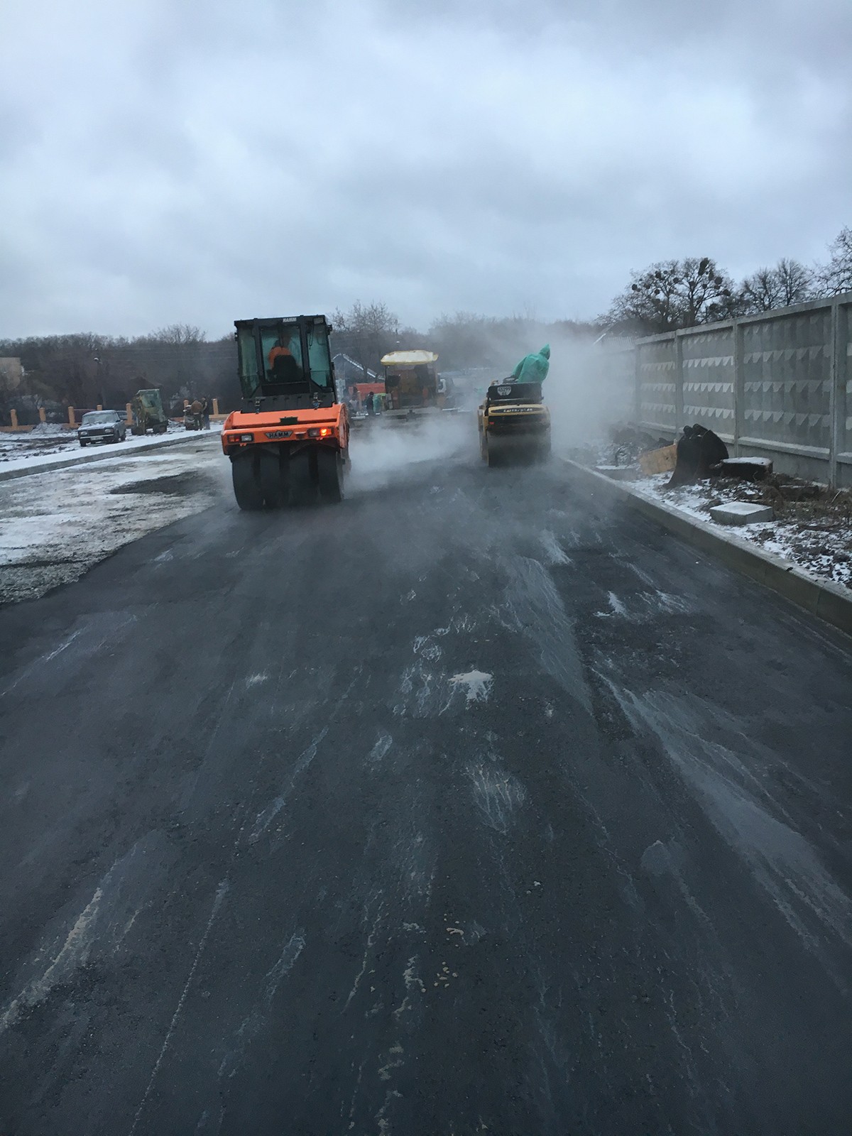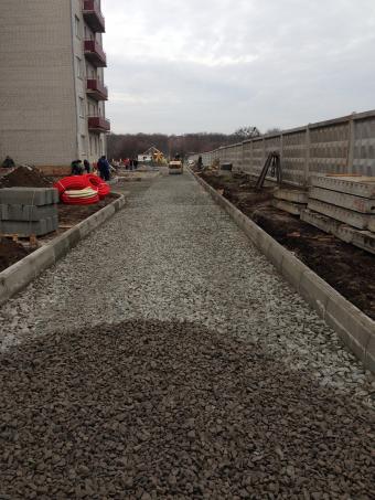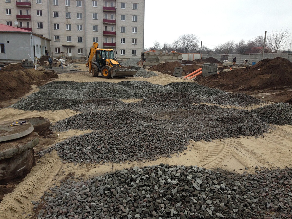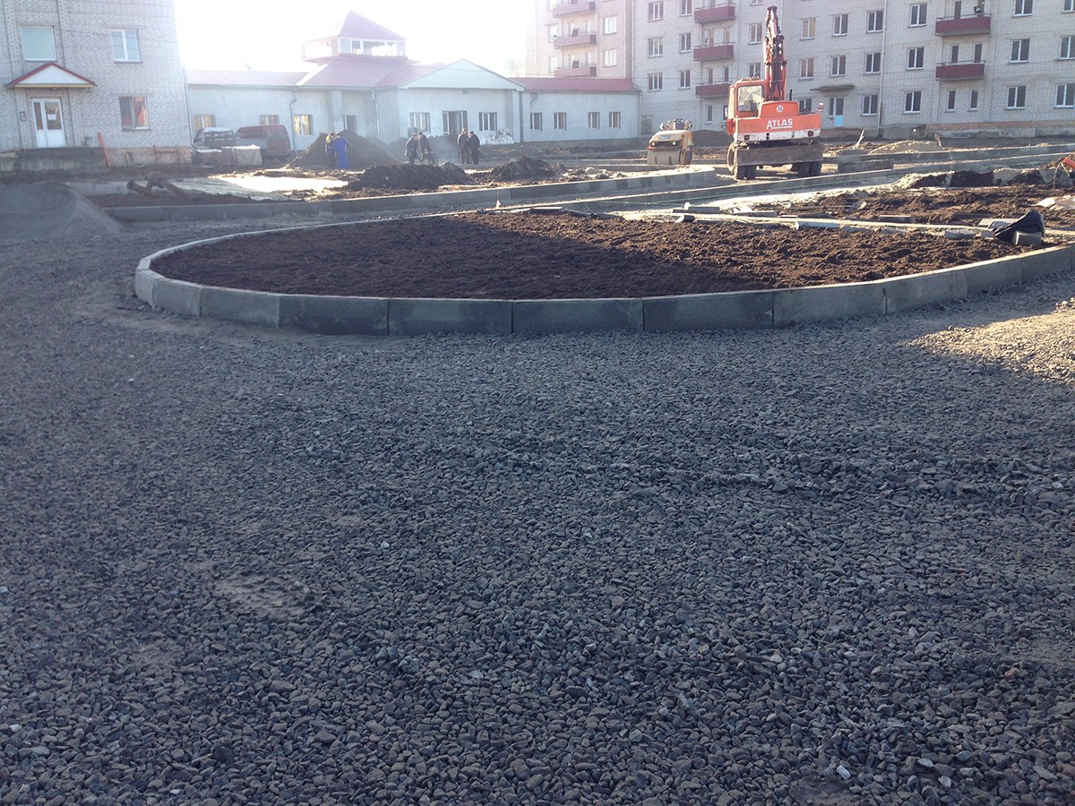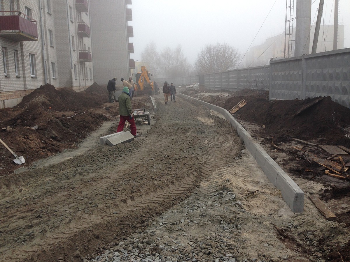 • Выполненные работы: сделали корыто - 60 см, засыпка песка - 15 см, укладка дорожным катком щебня 40-70 фракция - 25 см, засыпка щебня верхний слой 0,40 фракция - 20 см, установка дорожнего бардюра 1380 шт., асфальтирование - 7-8 см В10;