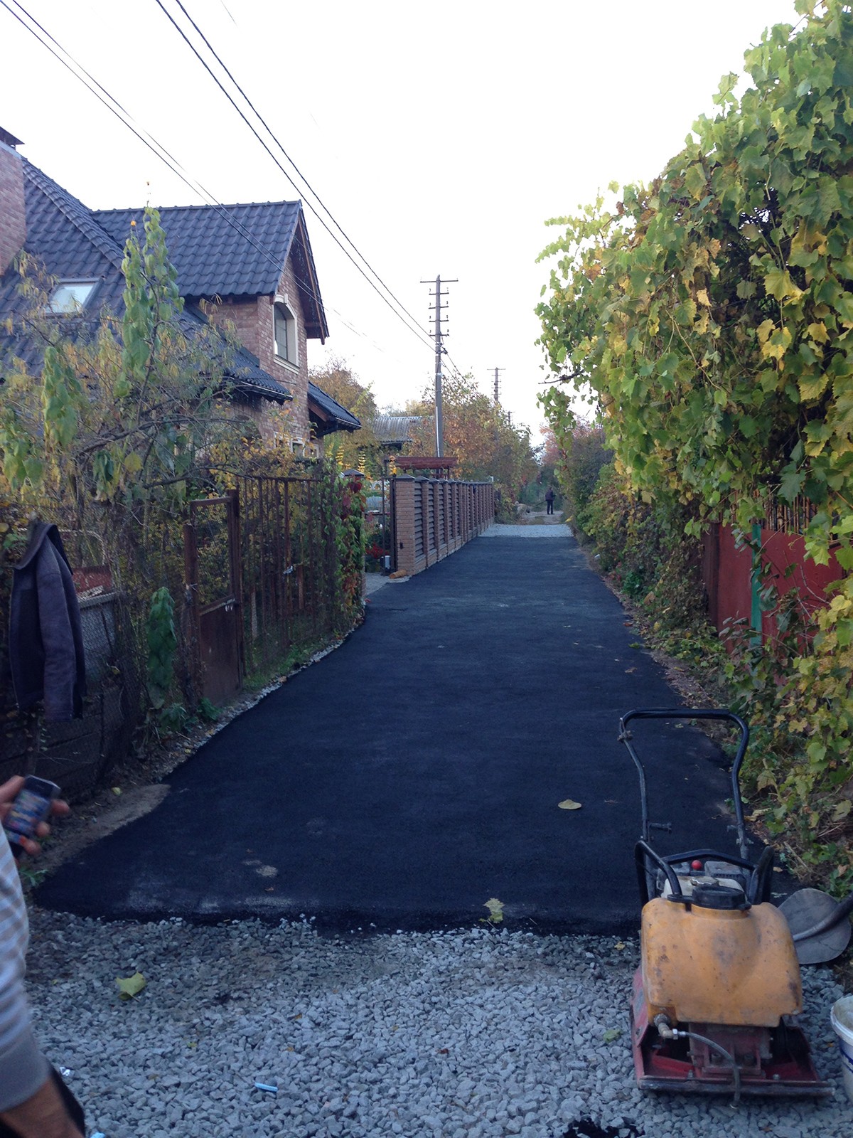 • Выполненные работы: планировка грунта, засыпка щебня 15см 20-40 фракция, асфальтирование 5 см В10