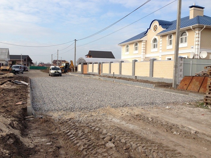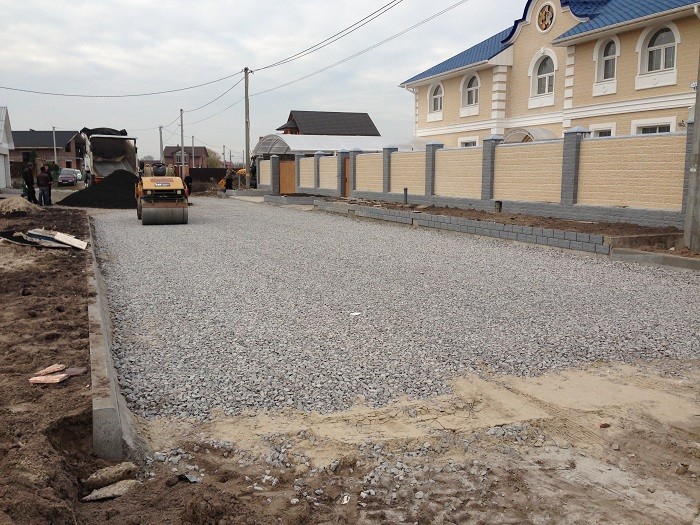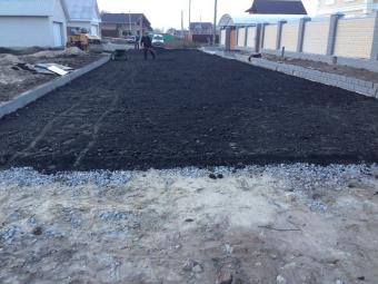 • Выполненные работы:  подготовительные работы, уплотнение грунта, засыпка щебня - 15 см, щебень фракция 20 40, асфальтная крошка - 6 см;